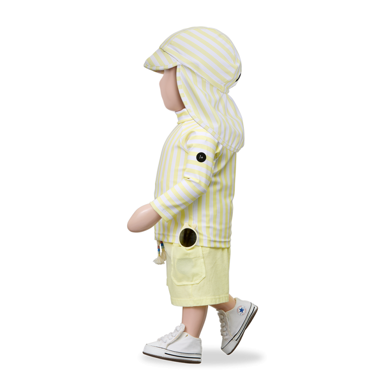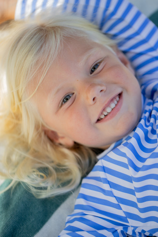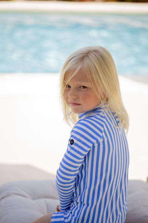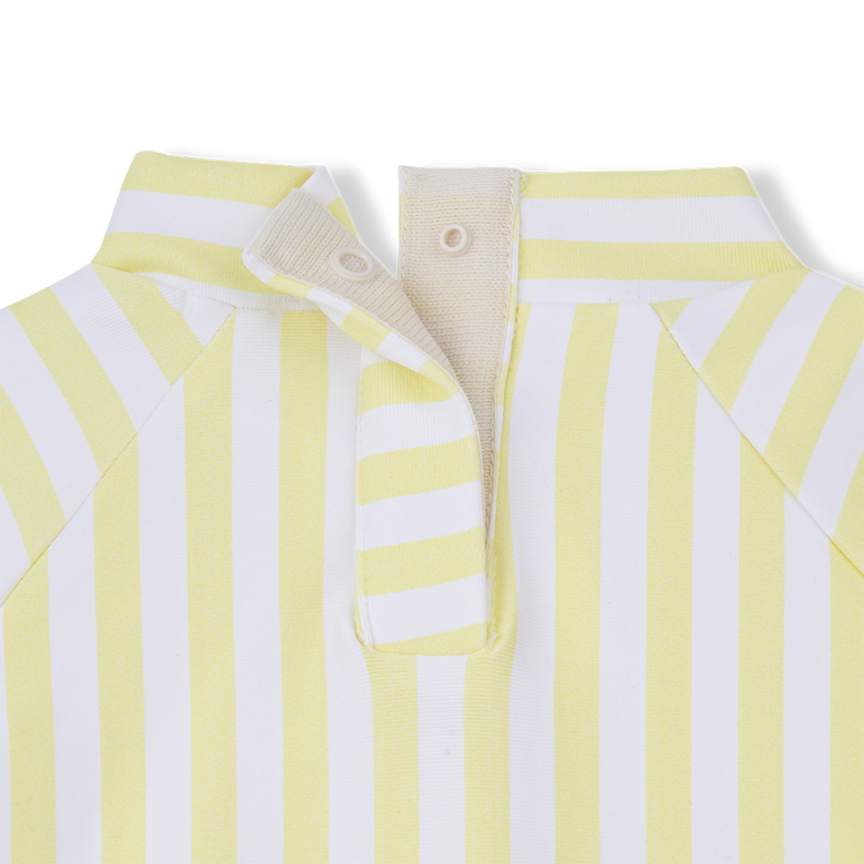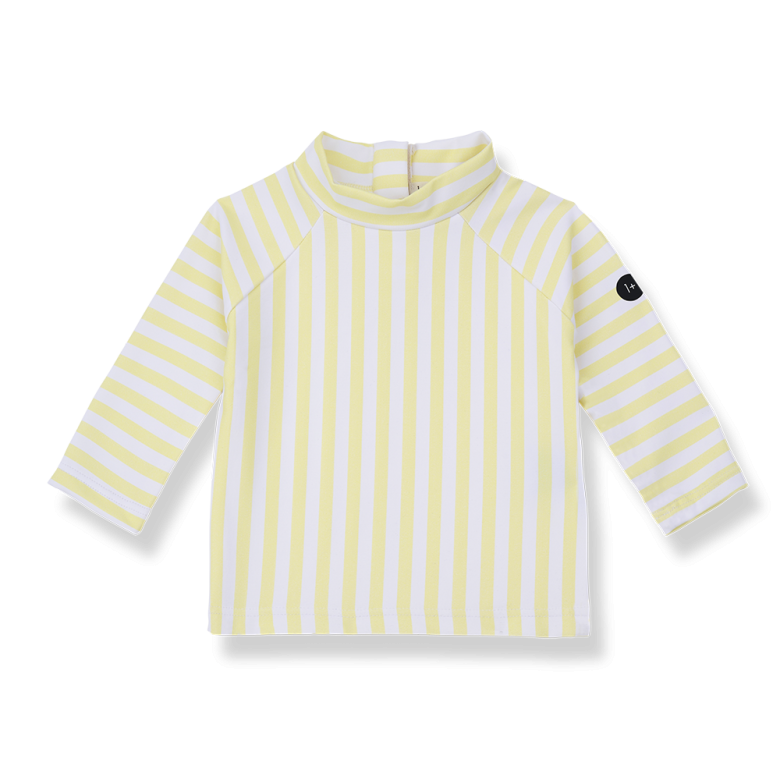 Camiseta de baño infantil de rayas, diseñada para proteger y acompañar a los más pequeños en sus días de sol y agua. Confeccionada en tejido técnico suave y elástico, ofrece un ajuste cómodo y gran libertad de movimiento.