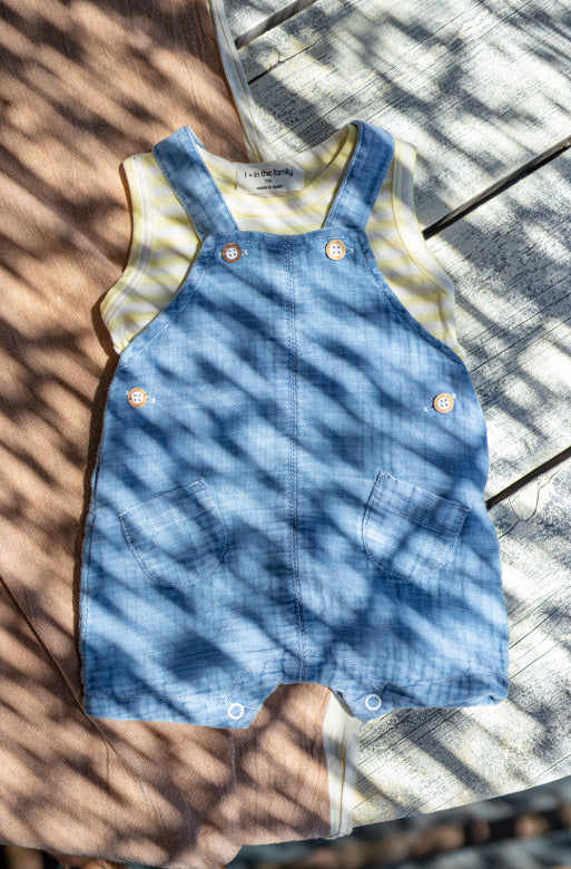 Un diseño sencillo, funcional y encantador, perfecto para combinar con camisetas o llevar solo en los días más calurosos. Una prenda versátil y cuidada, fiel al estilo minimalista y delicado de 1+ in the family.