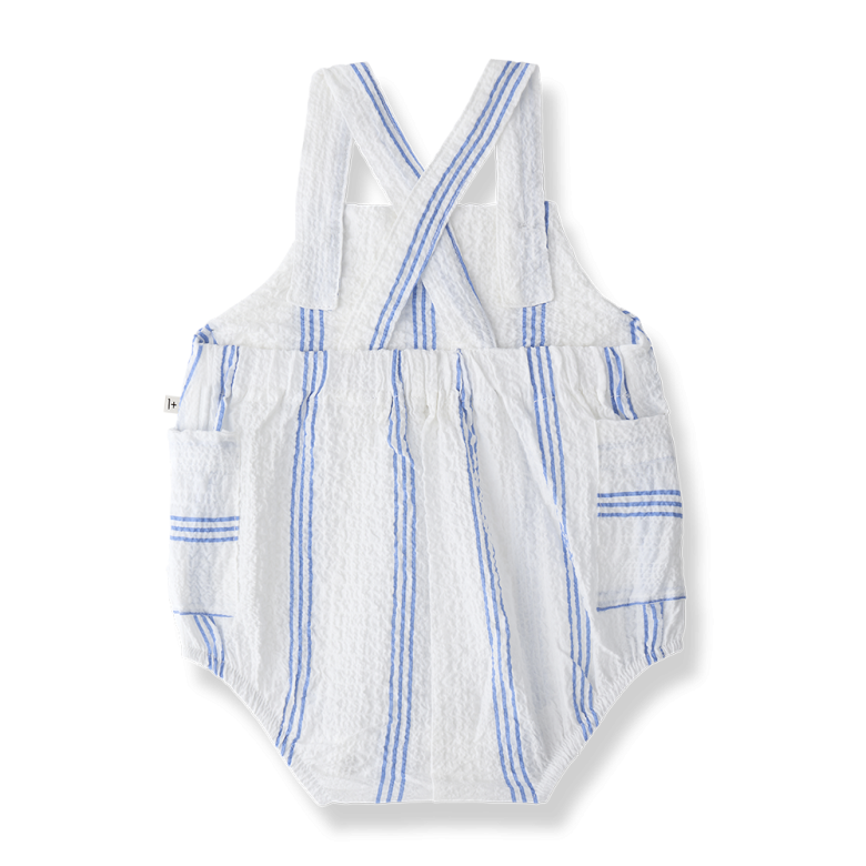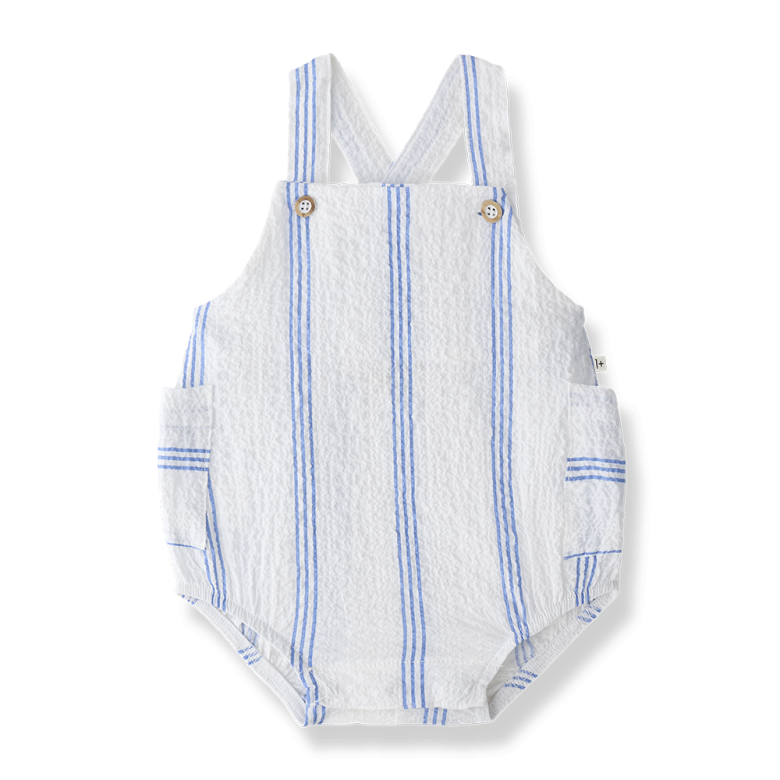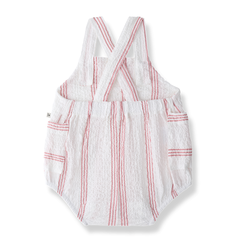 Romper a rayas confeccionado en un tejido ligero y texturizado de algodón, ideal para los días cálidos. Presenta un delicado diseño de rayas verticales, que aporta un aire fresco y veraniego.
