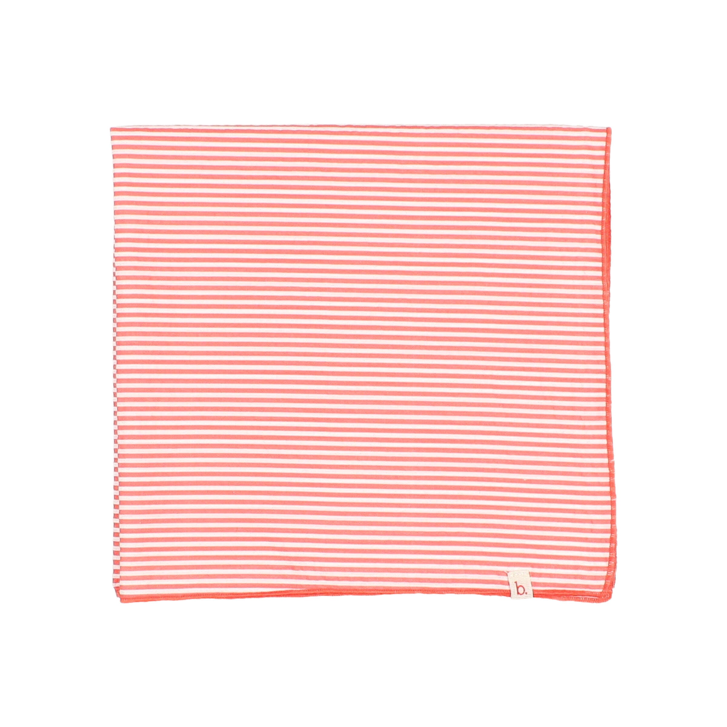 Los bordes están rematados con un vivo en tono coral más intenso, que enmarca la pieza y realza el contraste del estampado. En una de las esquinas incorpora una pequeña etiqueta con el logo “b.” que aporta un detalle sutil de marca.