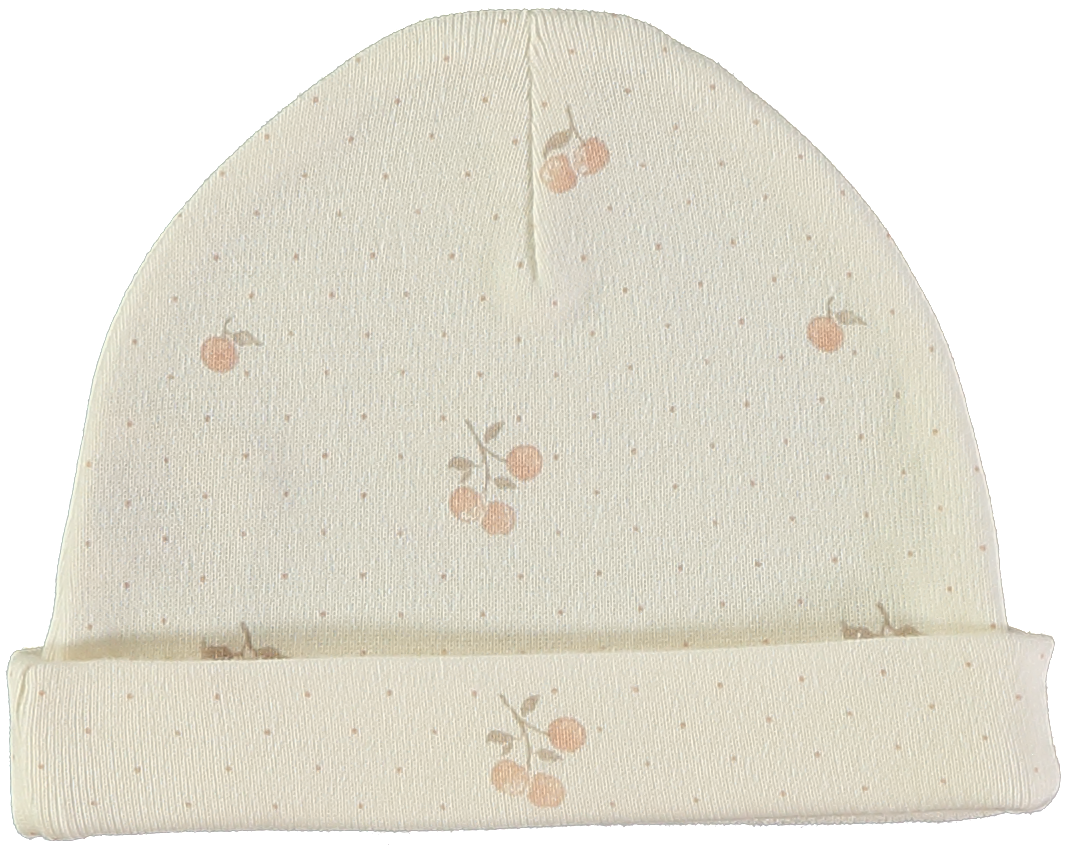 Gorro con orejitas con tejido canalé y estampado Berries en color Nude de la marca Lillymom