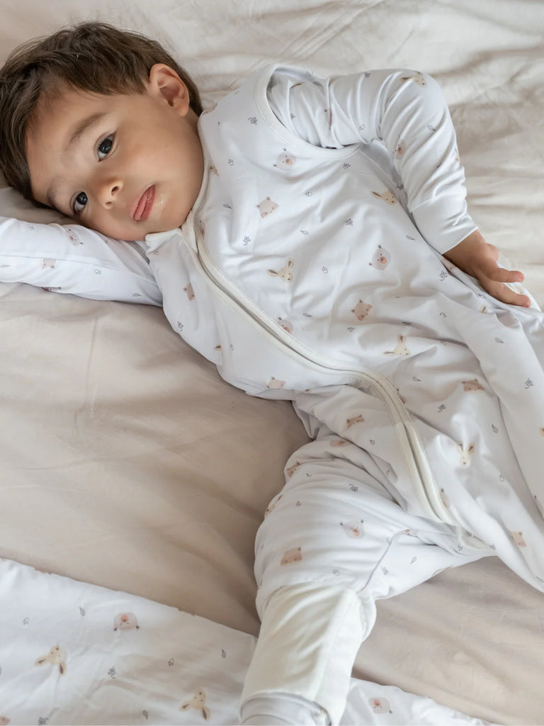 La clasificación TOG 2,5 garantiza el confort adecuado, y la cremallera fácil de usar permite vestirlo rápidamente y sin complicaciones. Diseñado como un mono con pies antideslizantes , permite que su pequeño se mueva libremente sin dejar de estar abrigado. Combínalo con un pijama de dos piezas para crear el conjunto definitivo para la hora de dormir que le encantará a tu hijo.