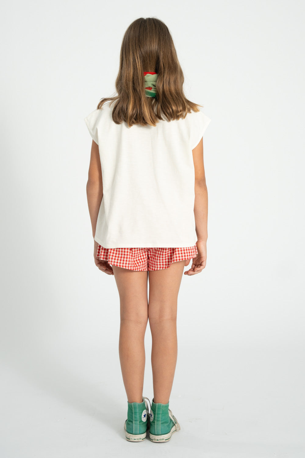 La camiseta de la marca Piupiuchick es de algodón suave, en color ecru con un corte recto y holgado que aporta comodidad y un aire relajado. Tiene manga corta sin costura marcada, ligeramente caída sobre el hombro, y cuello redondo clásico. En el delantero destaca un print gráfico de una manzana roja con la palabra “LOVE”, con un acabado de efecto desgastado que le da un estilo vintage y desenfadado. En la parte trasera, a la altura del cuello, incorpora un pequeño detalle de estrella en rojo, sutil pero distintivo. Es una camiseta fresca y versátil, perfecta para looks de verano con un toque divertido y atemporal.