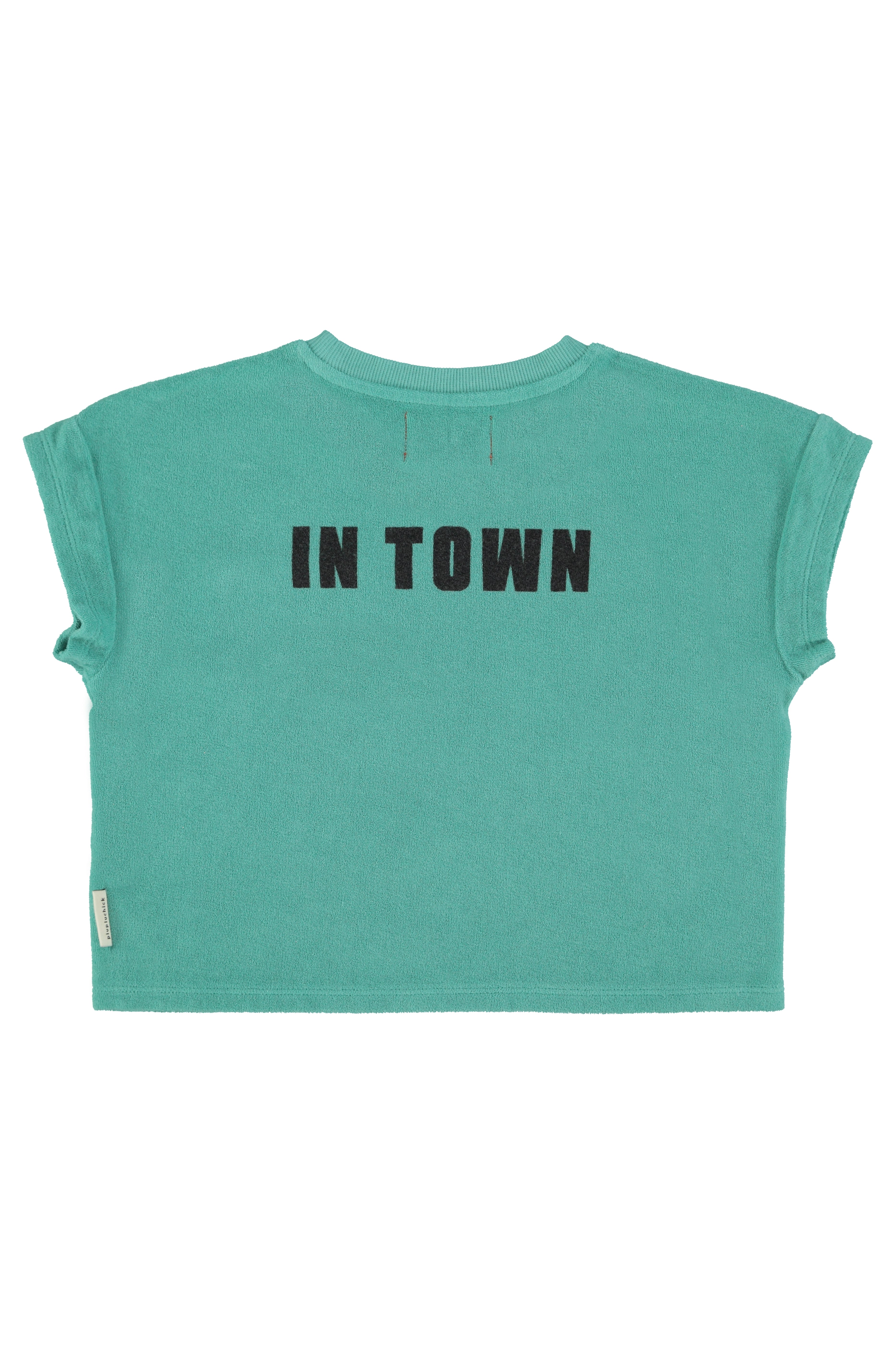 En la espalda, la camiseta incorpora otro mensaje estampado en negro que dice “IN TOWN".