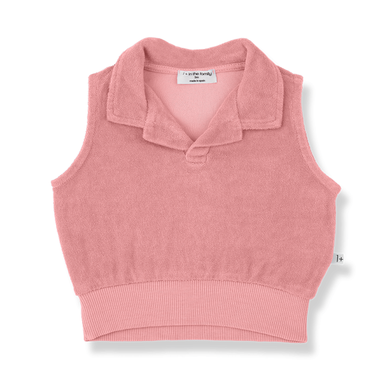 Camiseta mangas confeccionada en suave tejido de rizo, ideal para aportar comodidad y frescura. Presenta un cuello tipo polo con pequeña abertura en el delantero, que le da un aire clásico y desenfadado.