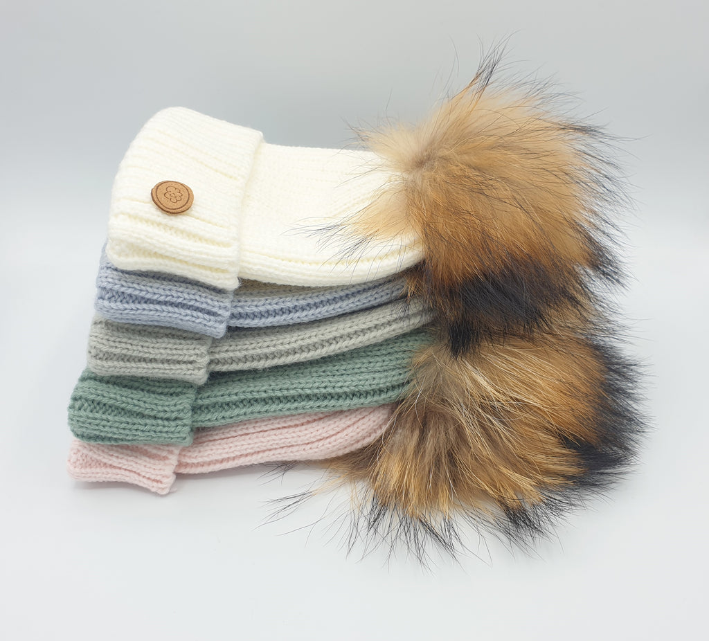 Gorro con borla de pelo extraíble disponible en 3 colores de la marca Monnuage