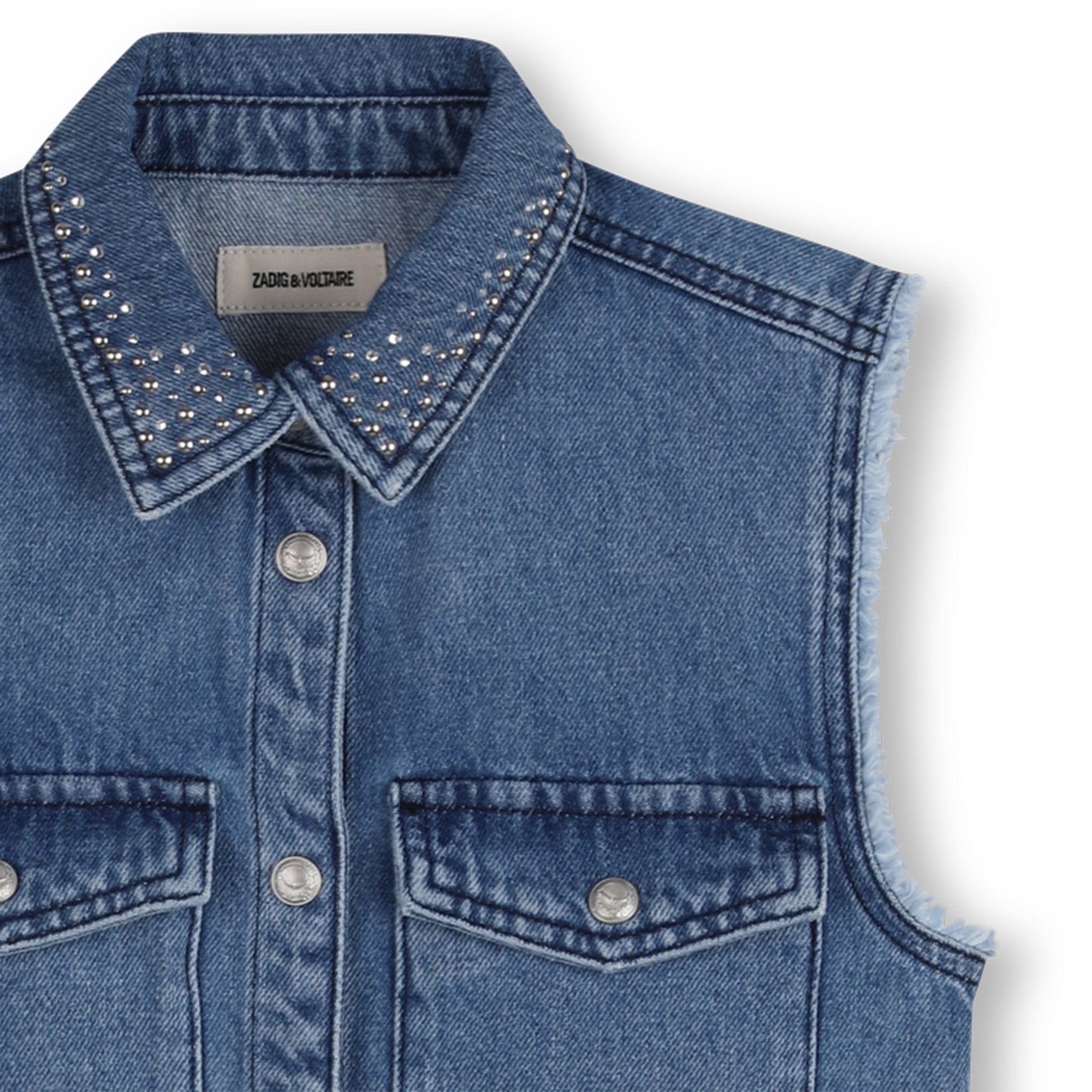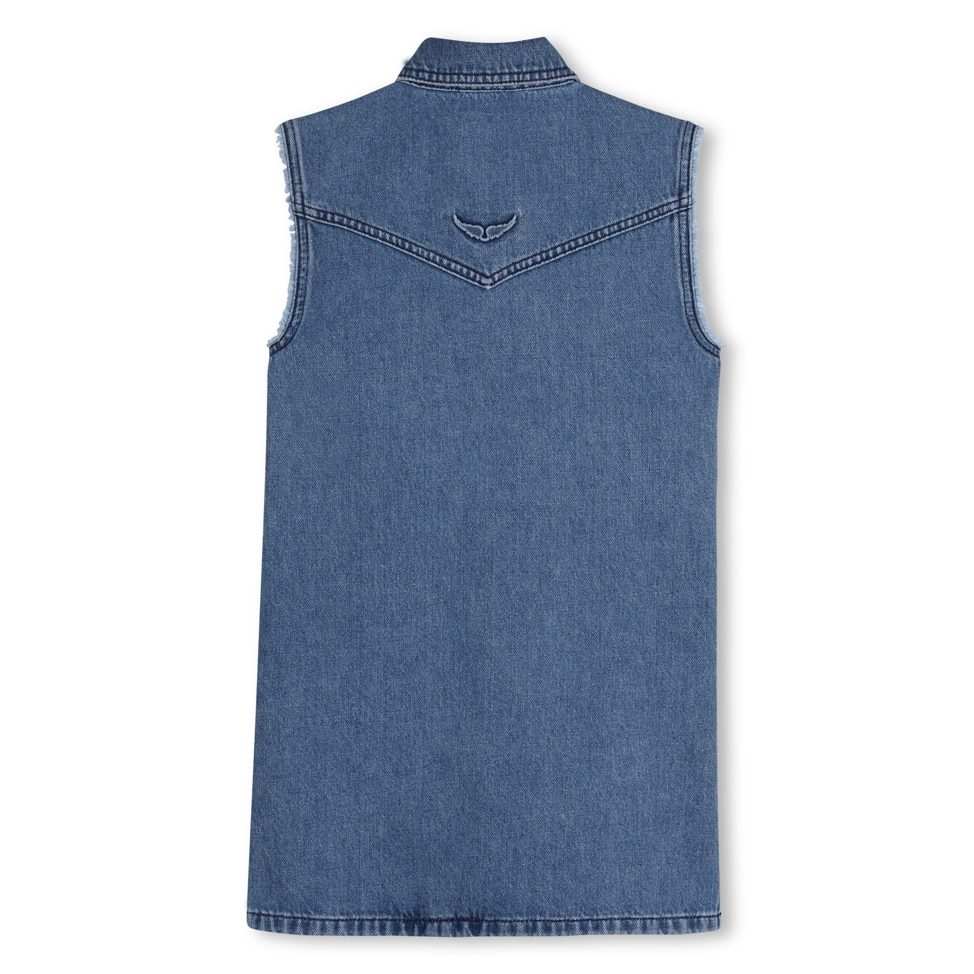 • Sin mangas, con sisas ligeramente deshilachadas que aportan un toque actual y desenfadado.